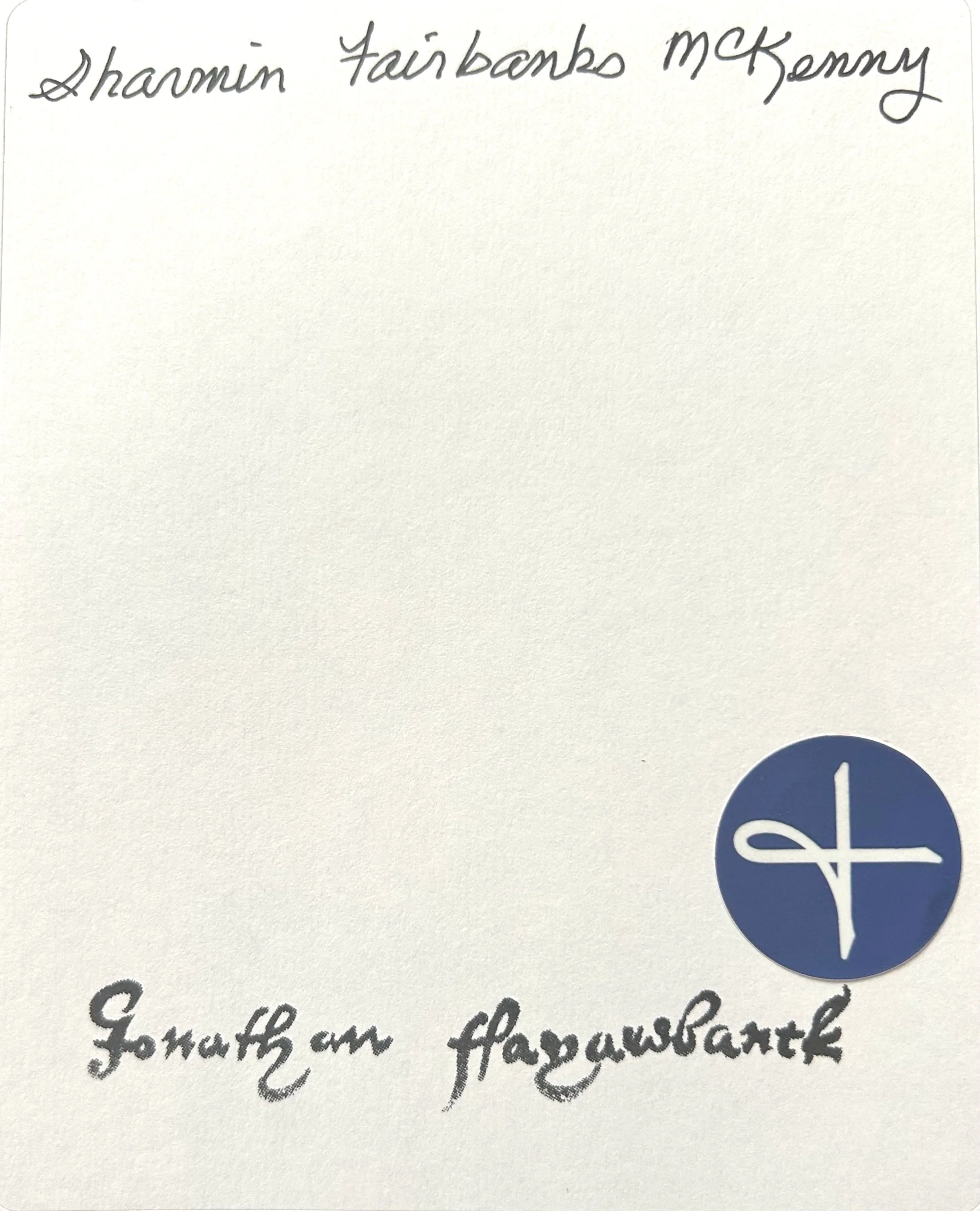 This author’s plate has the author’s signature and a likeness of Jonathan Fairbanks’s signature as found on a 1662 document he signed, found in Dedham Town Records, Volume IV, page 271. It also has a likeness of his wax seal that Jonathan would have used to seal his letters in the 1600s. The seal likeness was found as script on his will of 1668. There is also space for you to write a brief note and sign the plate if you are giving the book to a grandparent, parent, child, grandchild, or friend for a holiday present.